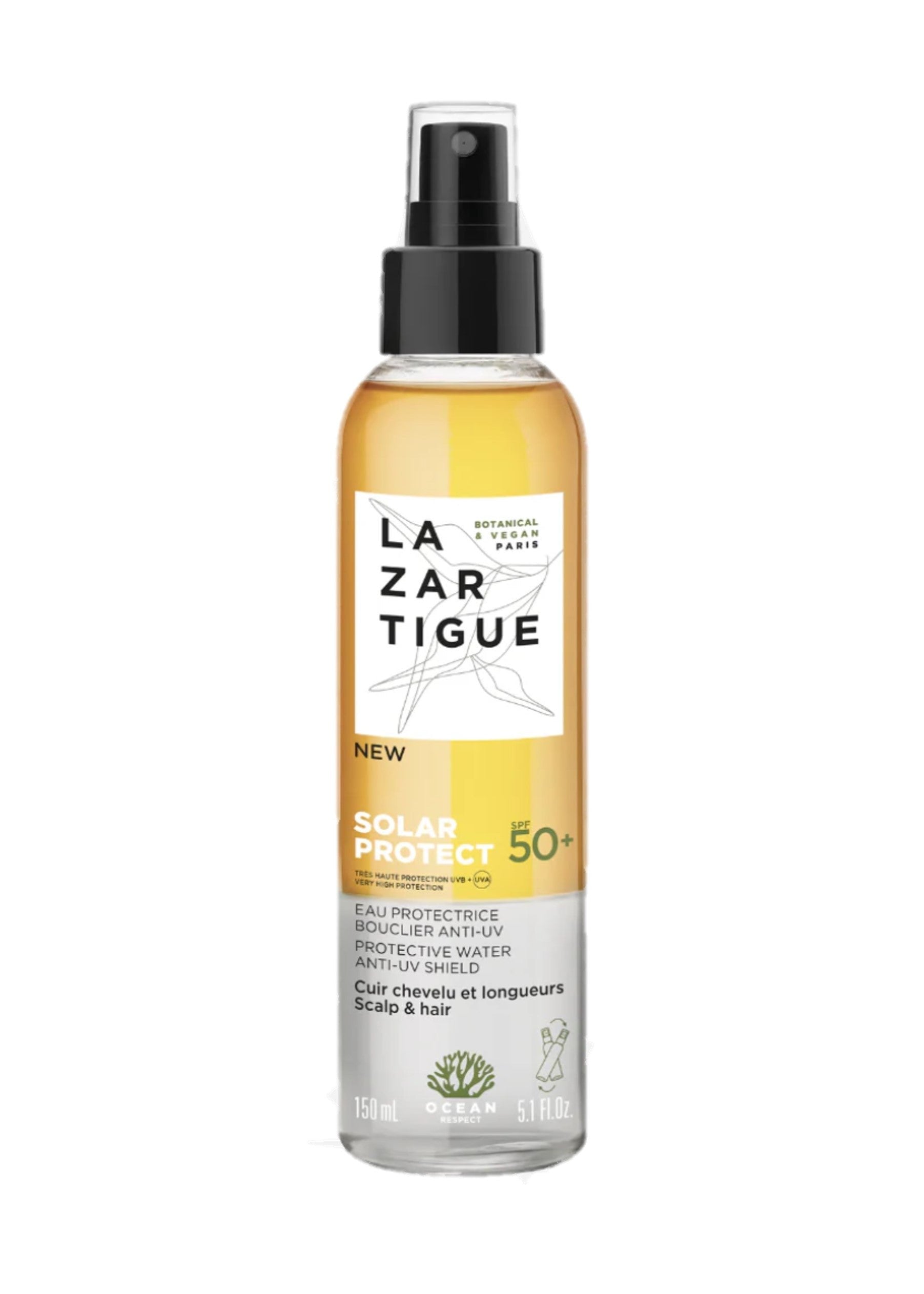 Agua protectora SPF50+ hidrata y protege el cuero cabelludo y los largos de las agresiones externas: sol, sal, arena y viento